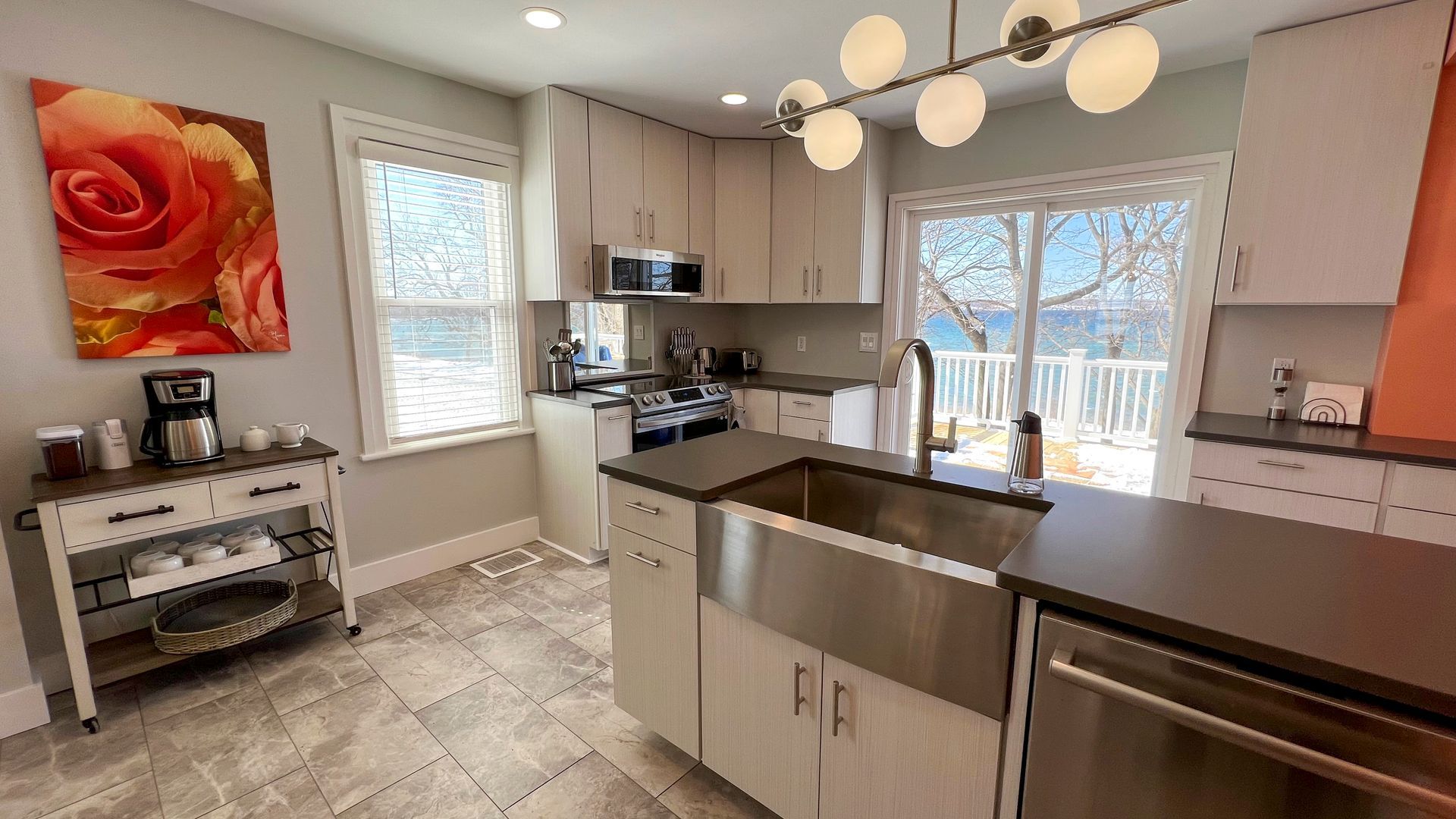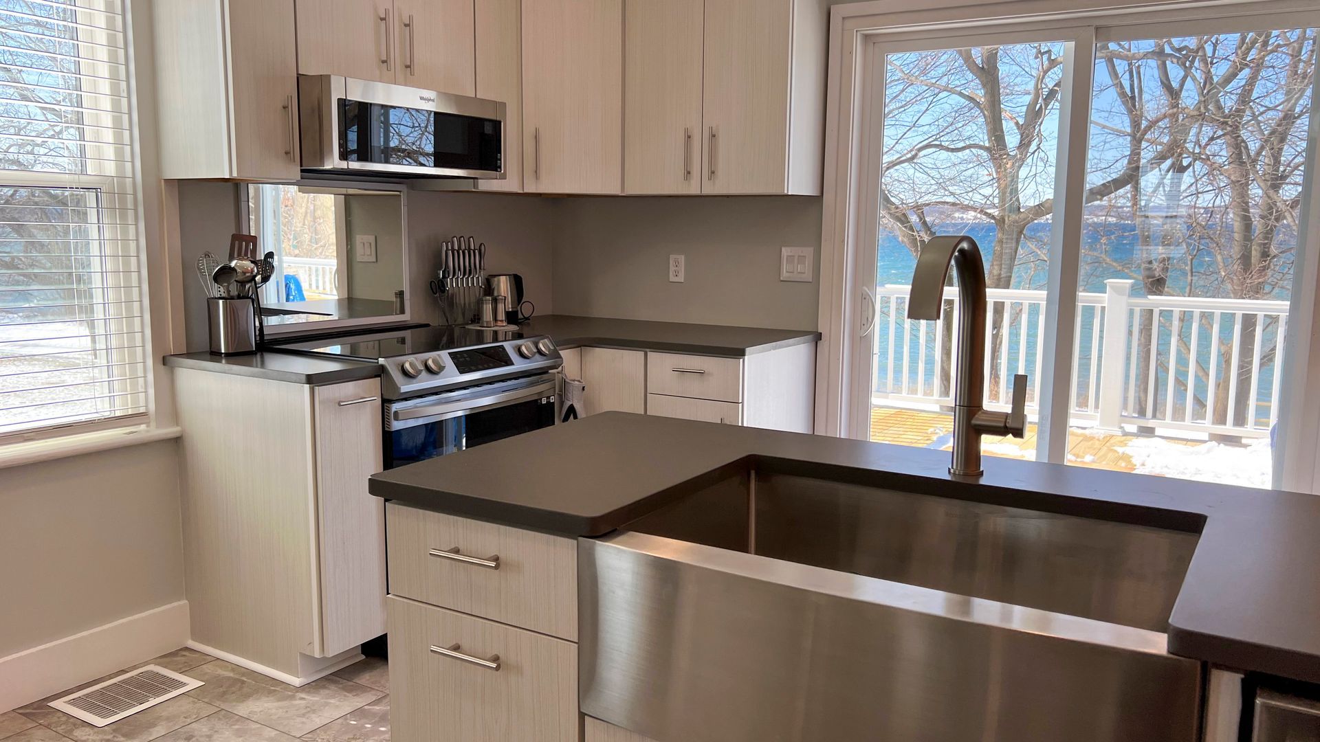 Renovations concluded in May, 2023 and everything in this house is new from bedding to the dock. The house is perfectly situated on the lake with an expansive lawn to the side. Sunsets delivered directly to your door! The kitchen and deck invite entertaining possibilities with a fire pit to complete the evening. Very quiet and comfortable, this house is owned by Wells College and being that close to the college offers many amenities: golf course, tennis courts, fitness center and walking paths along the lake. We would love to welcome you and insure you have a comfortable and convenient experience!